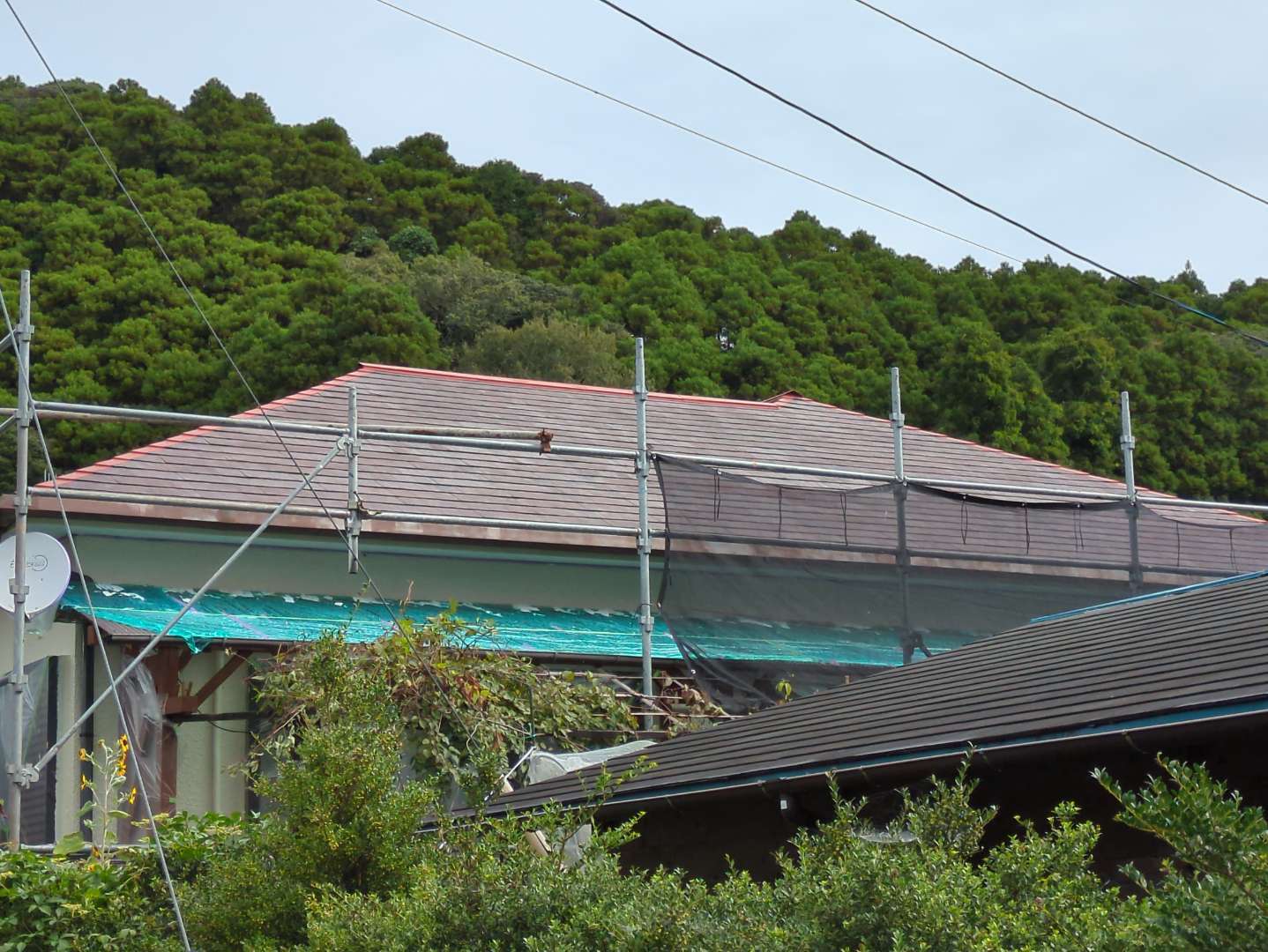 やっとの晴れ間に屋根上塗りが完了しました!