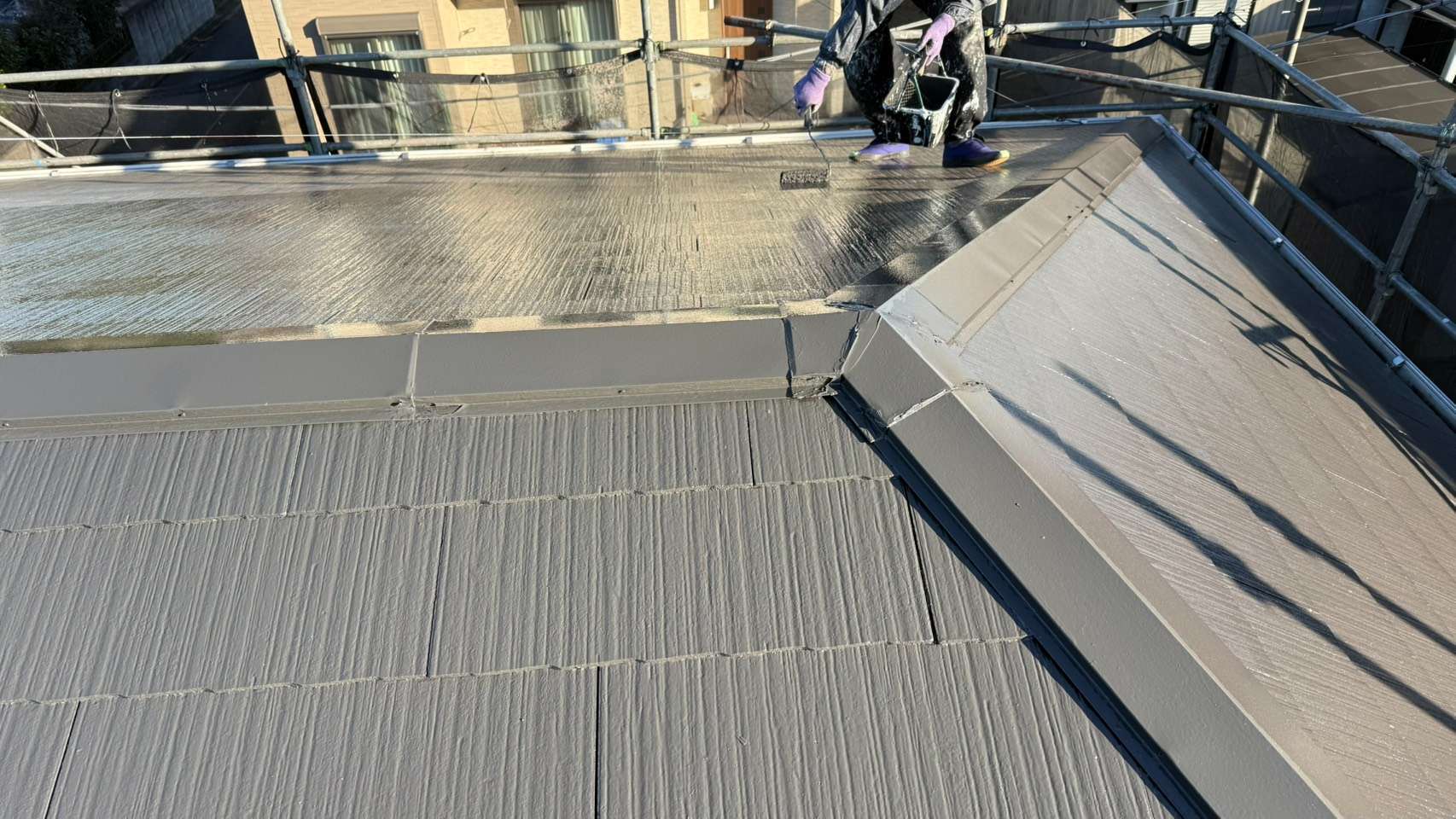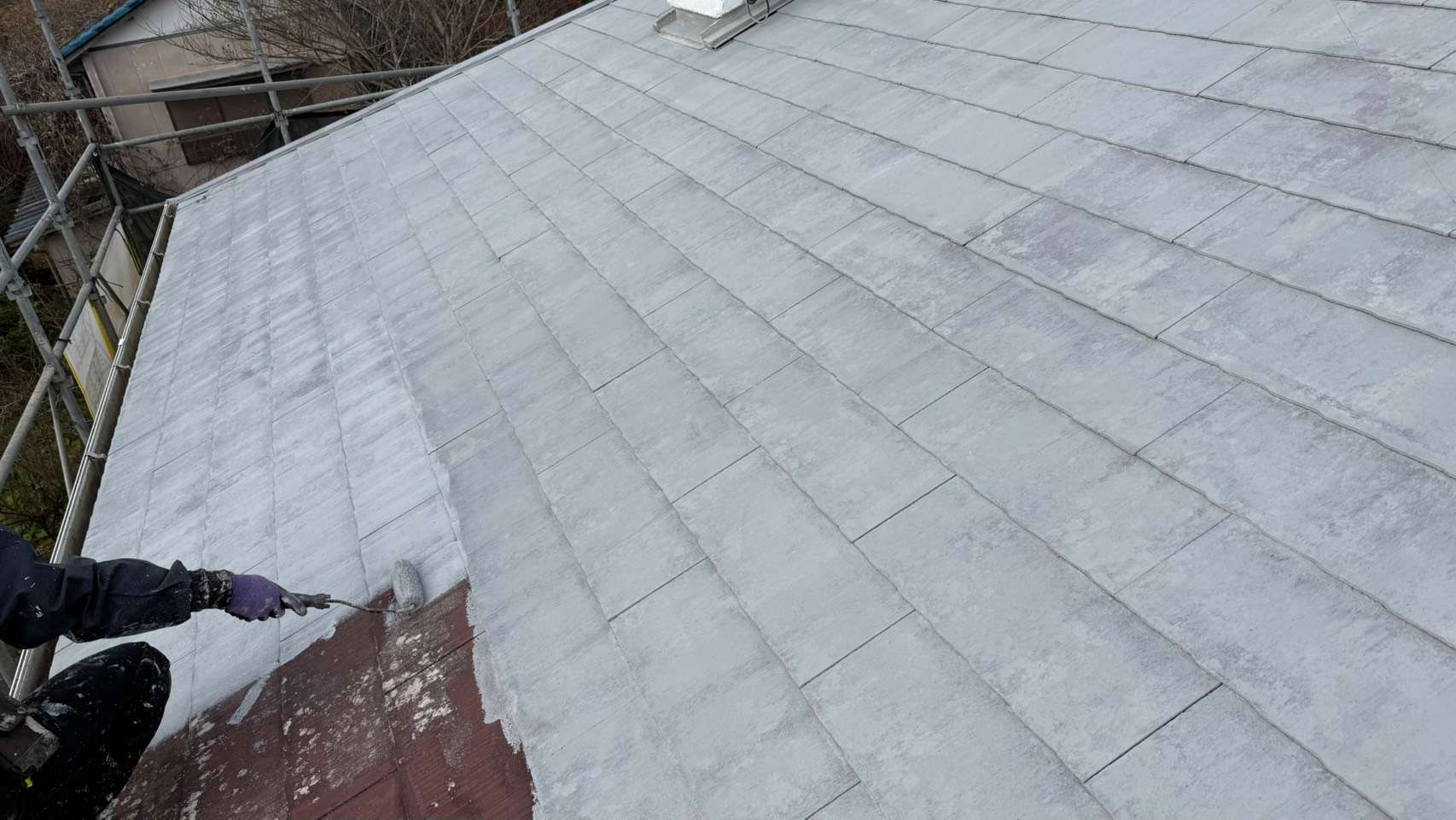 屋根材と仕上げ塗料をしっかりと密着させるための接着剤のような役割です。屋根材の種類や劣化状態に合わせて最適な下塗り材を選定します。