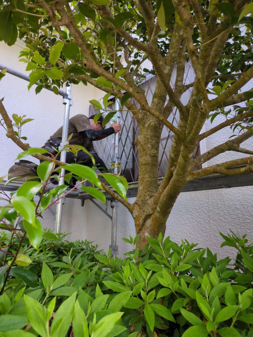 養生とは、外壁塗装を行う際に「塗装する箇所以外に塗料が付着しないようにビニール等でカバーすること」です。 養生をきちんと行うことで、「塗料が隣のお家の車に飛んでしまった!」という、近隣トラブルも未然に防ぐことができます。