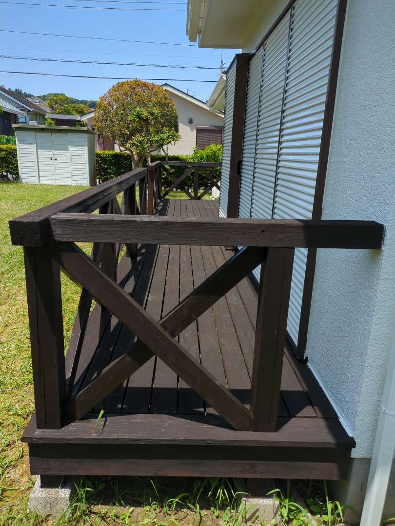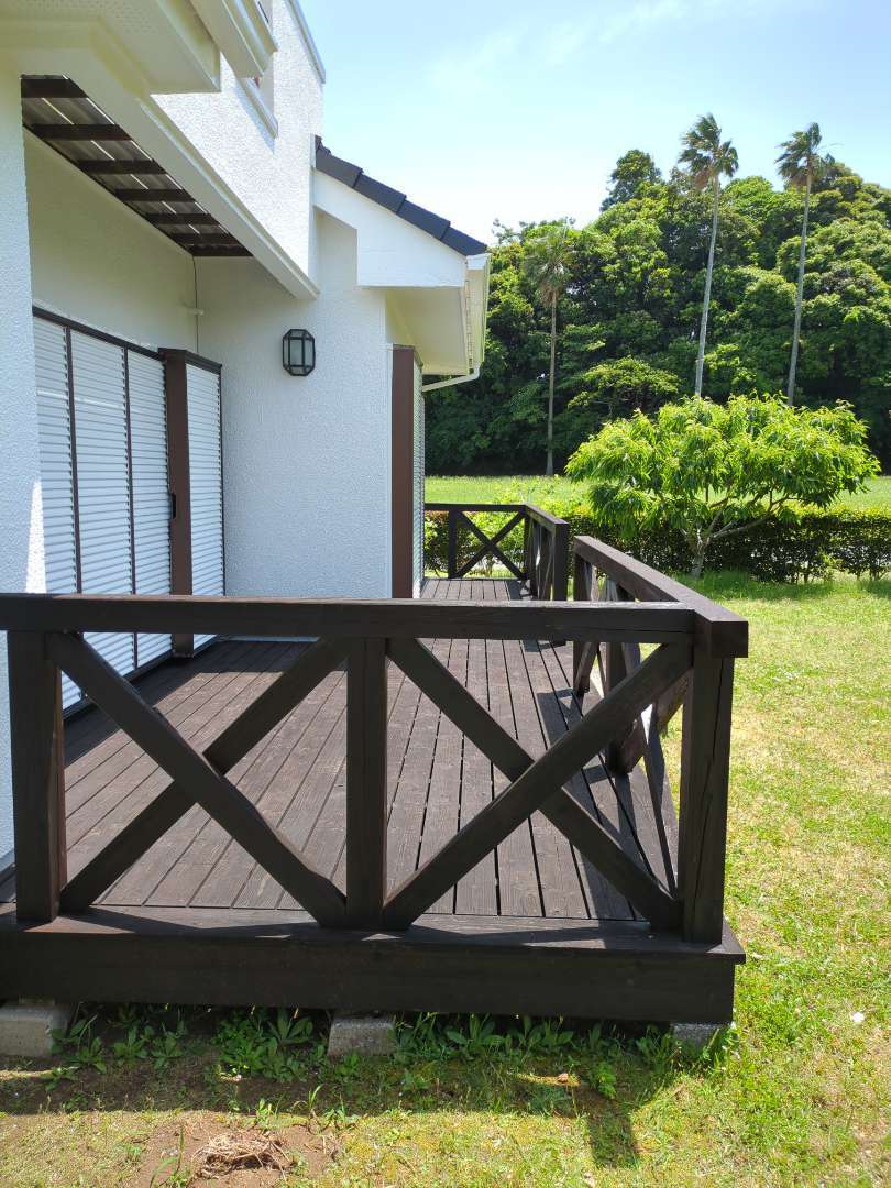 夷隅郡御宿町御宿台の現場では、ウッドデッキの補修工事の後、ウッドデッキの塗装工事をおこないました。