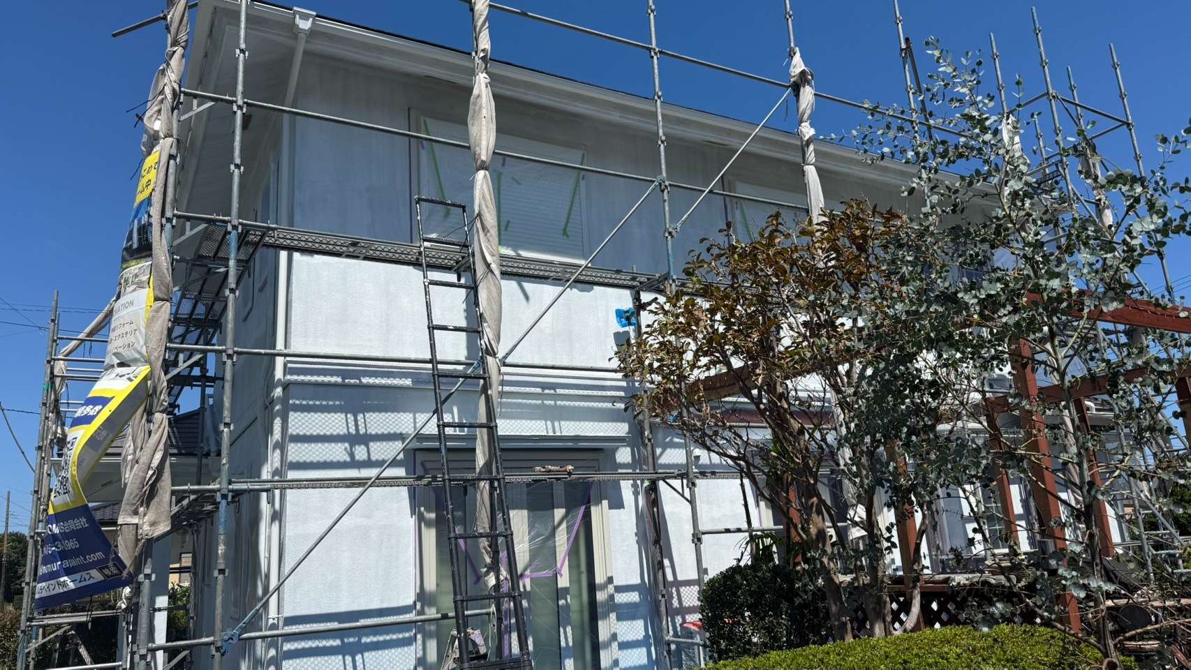 いすみ市大原台の現場では、外壁屋根塗装工事を行っています😊