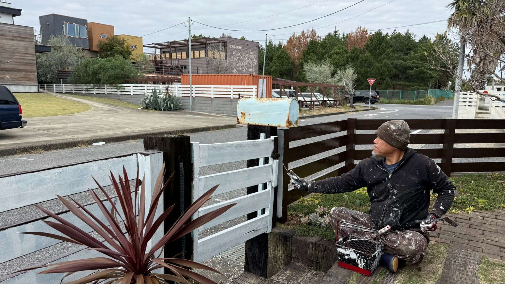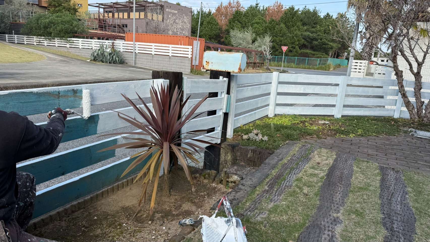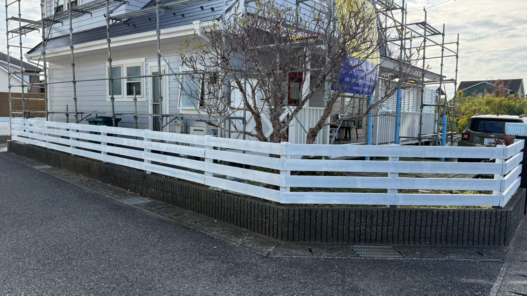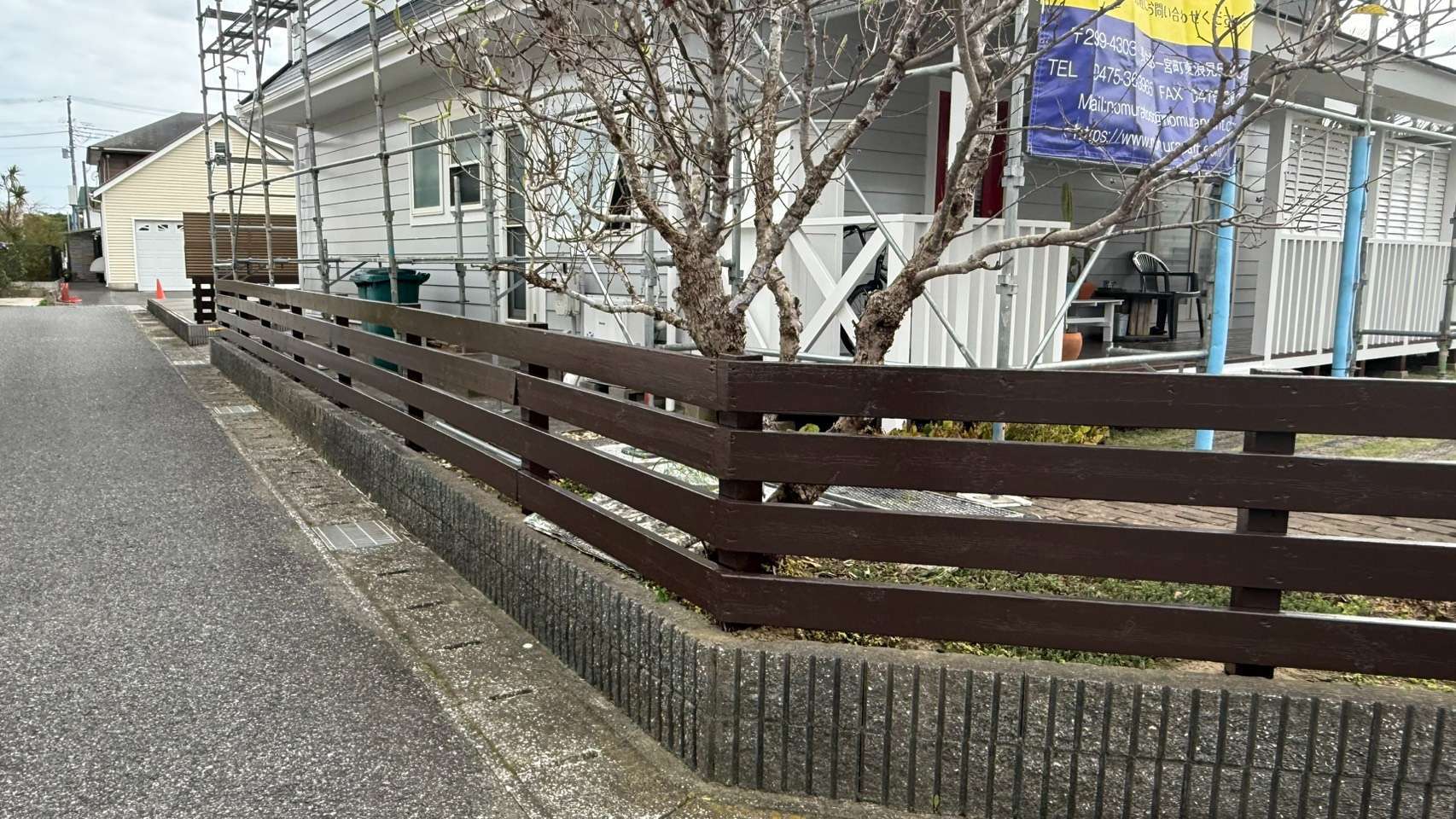長生郡一宮町では外壁、屋根の塗装が完了し、フェンスの塗装工事を行っています。