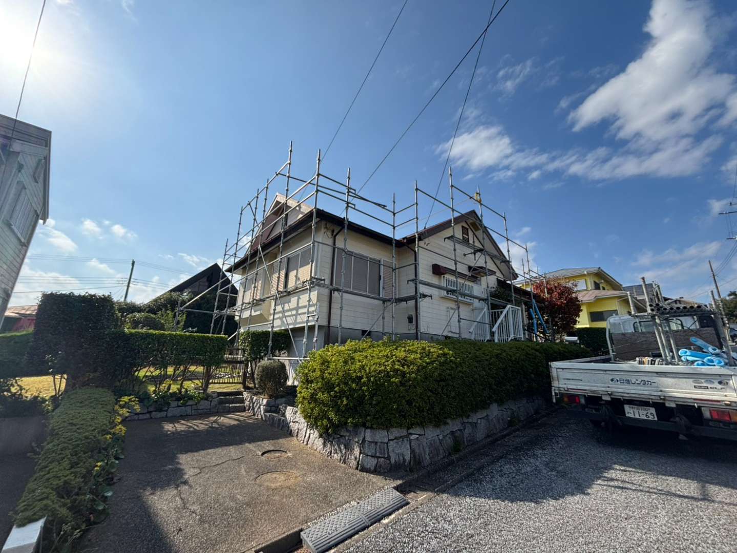 大原台には、野村塗装からのお客さまもたくさんいらっしゃいます。足場設置の前に近隣にご挨拶に伺った際に、