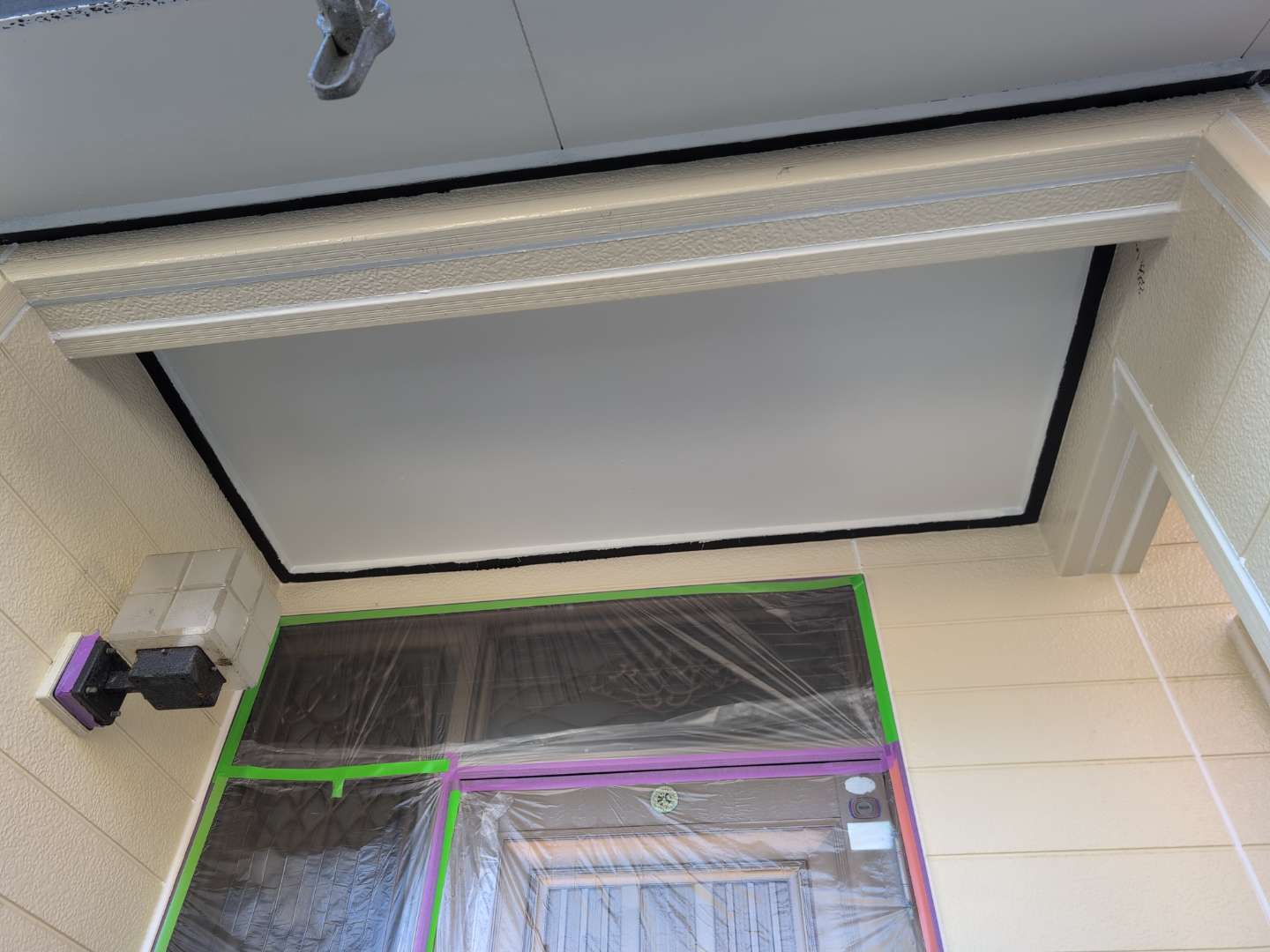 玄関の上、軒天の様子です。付帯部も美しく塗りあがっています😆💕🌈
