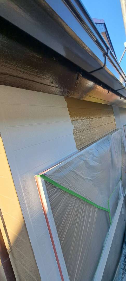 いすみ市大原台の現場では、外壁塗装工事の中塗り作業を行っています😊🏠