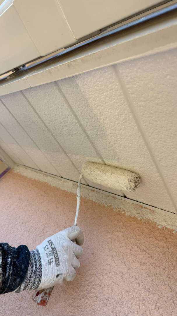 軒天も美しく塗りあがりました😆💕細かいところまで丁寧に塗装をおこなっています🏠