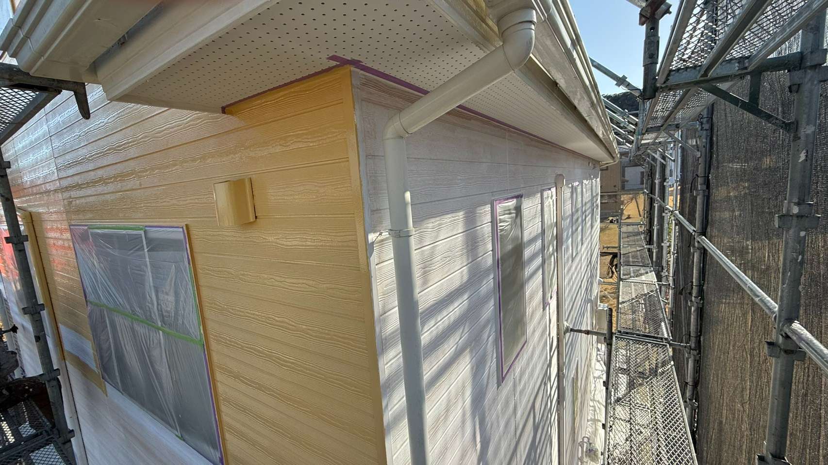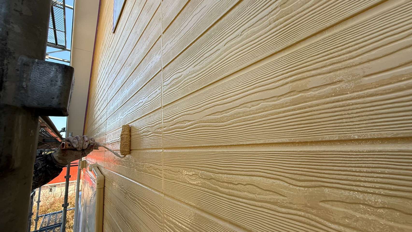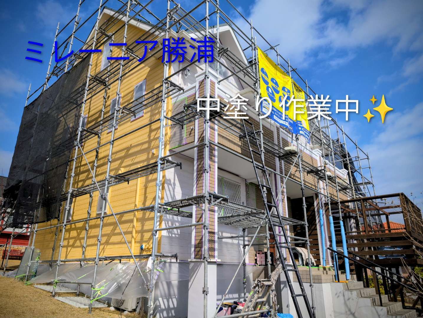 勝浦市興津久保山台(ミレーニア勝浦)では、外壁塗装工事の 中塗り作業 を行いました✨