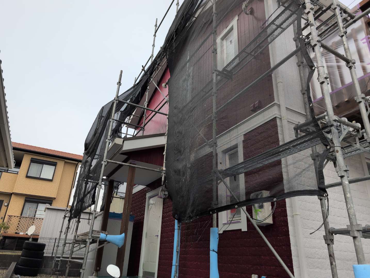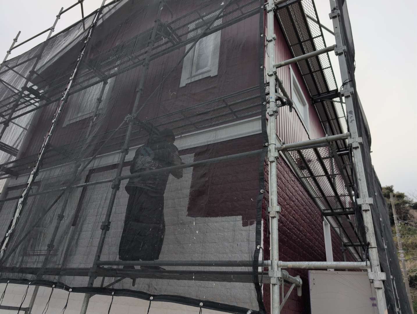 夷隅郡御宿町御宿台の現場では、外壁塗装工事の中塗り作業を行っています👨🏭