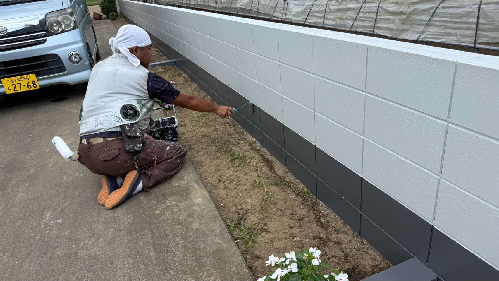 白子町南日向の現場では、以前塗装のご依頼を賜り、今回、再度の外塀塗装工事のご依頼をいただきました😊