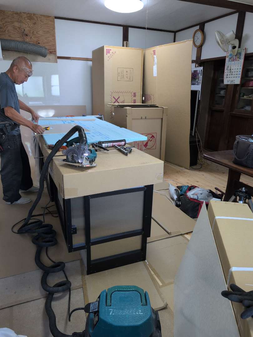 これからキッチンセットの取付工事を行います。