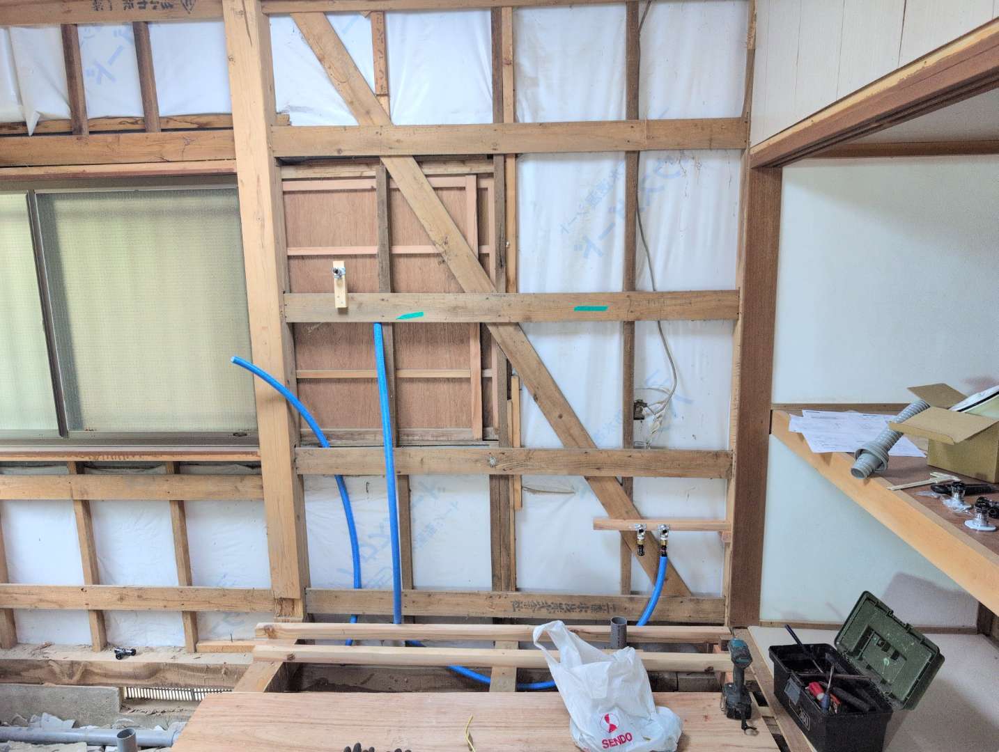 これからボード材貼る前に断熱材を入れていきます。
