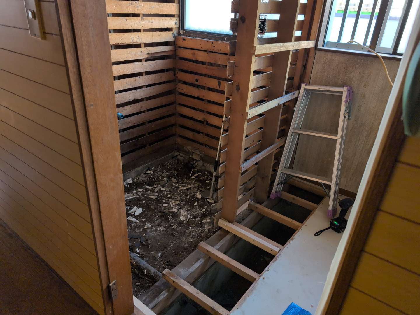 浴室の入口も大きくなるため、大工による壁の改修もおこないます。