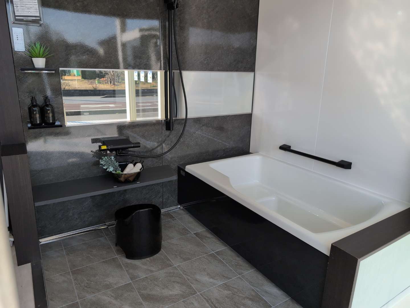 タカラといえば「ホーロークリーン浴室パネル」。掃除のしやすさはもちろんですが、「浮かせる収納」こそおすすめのポイントなのです!!