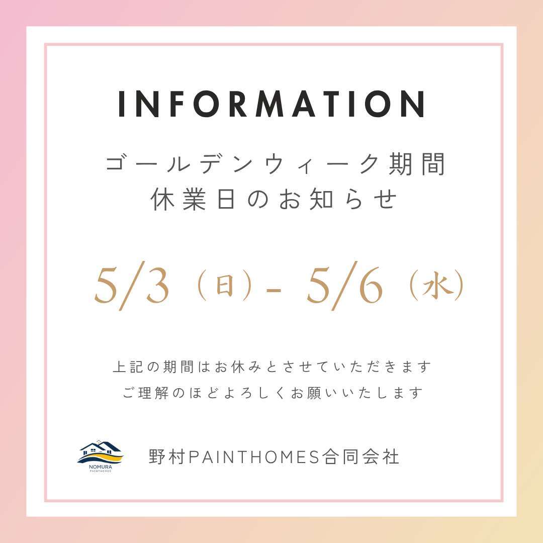 誠に勝手ながら、ゴールデンウィーク期間中の休業日につきまして、下記の通りご案内申し上げます。