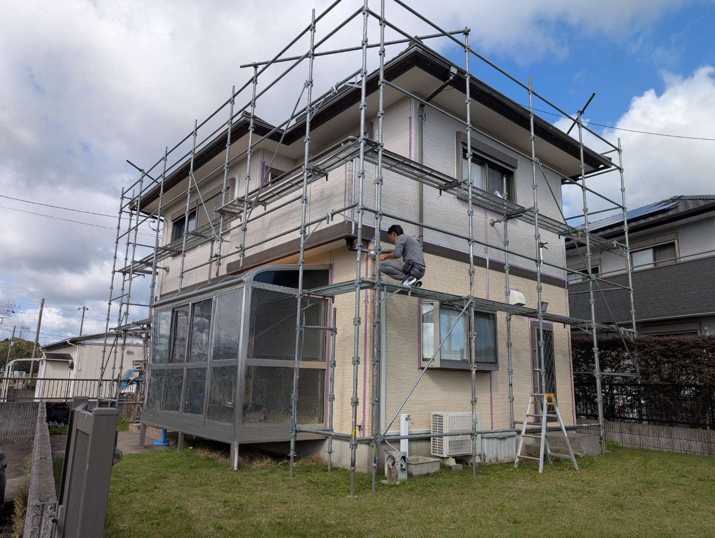 いすみ市の現場では、外壁のコーキング作業を行っています☺️