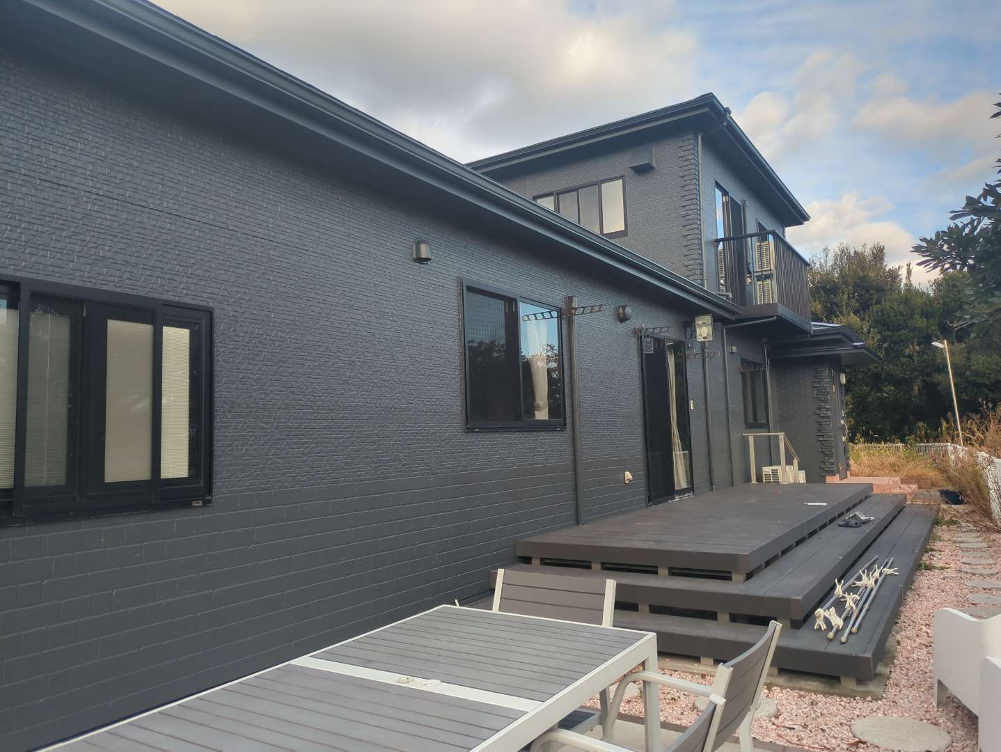お客様のお宅は眺めが本当に素晴らしく、営業で伺っても、時間が止まったような素敵な時間を過ごすことができました。塗装しておりました職人も眺めを堪能しながら、作業を進めることができた、と申しております。今までの外装とはガラっと変わった外壁・屋根塗装にご満足していただけたと伺い、とても嬉しく存じます。