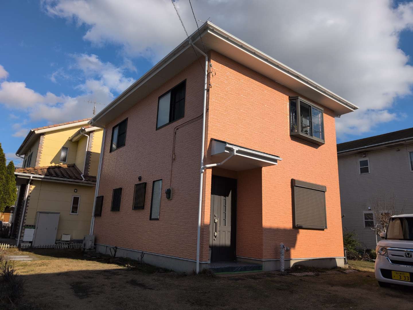 希望していたボローニャグリーンの屋根と、壁のND-491の可愛いオレンジに塗装していただきました。おかげで家全体がとても明るくなり、本当に嬉しく思っています。思い切って塗装をお願いして良かったです。