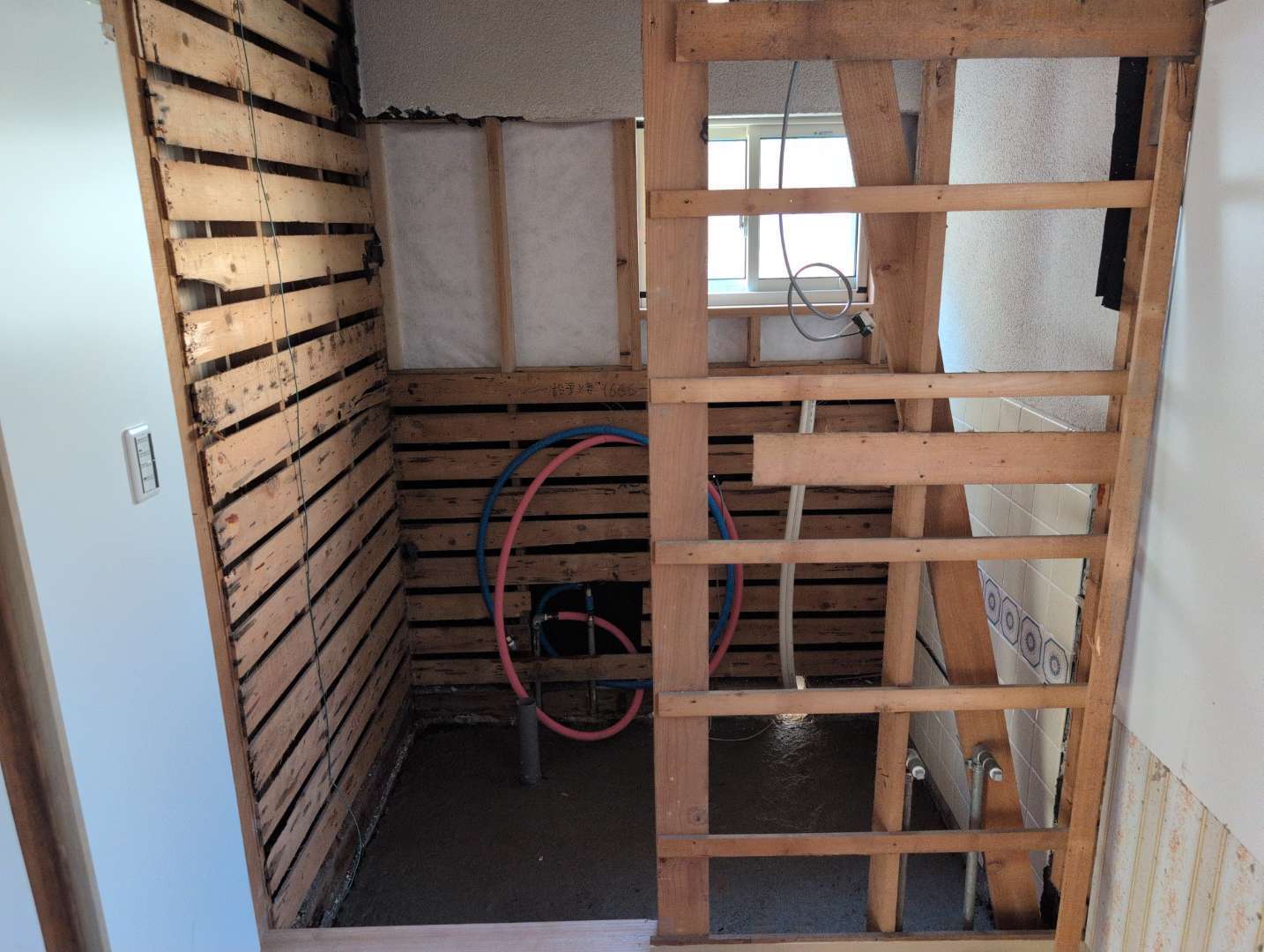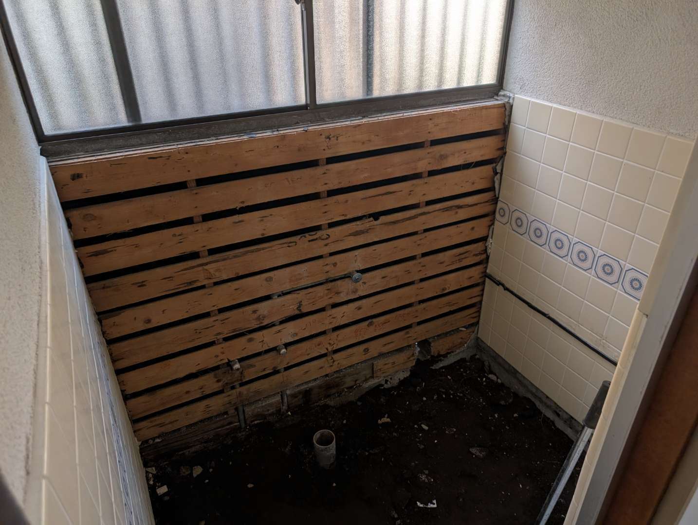 • 旧在来浴室のタイルや設備をすべて撤去し、配管や防水の状態を確認。必要に応じて配管の改修を行いました。