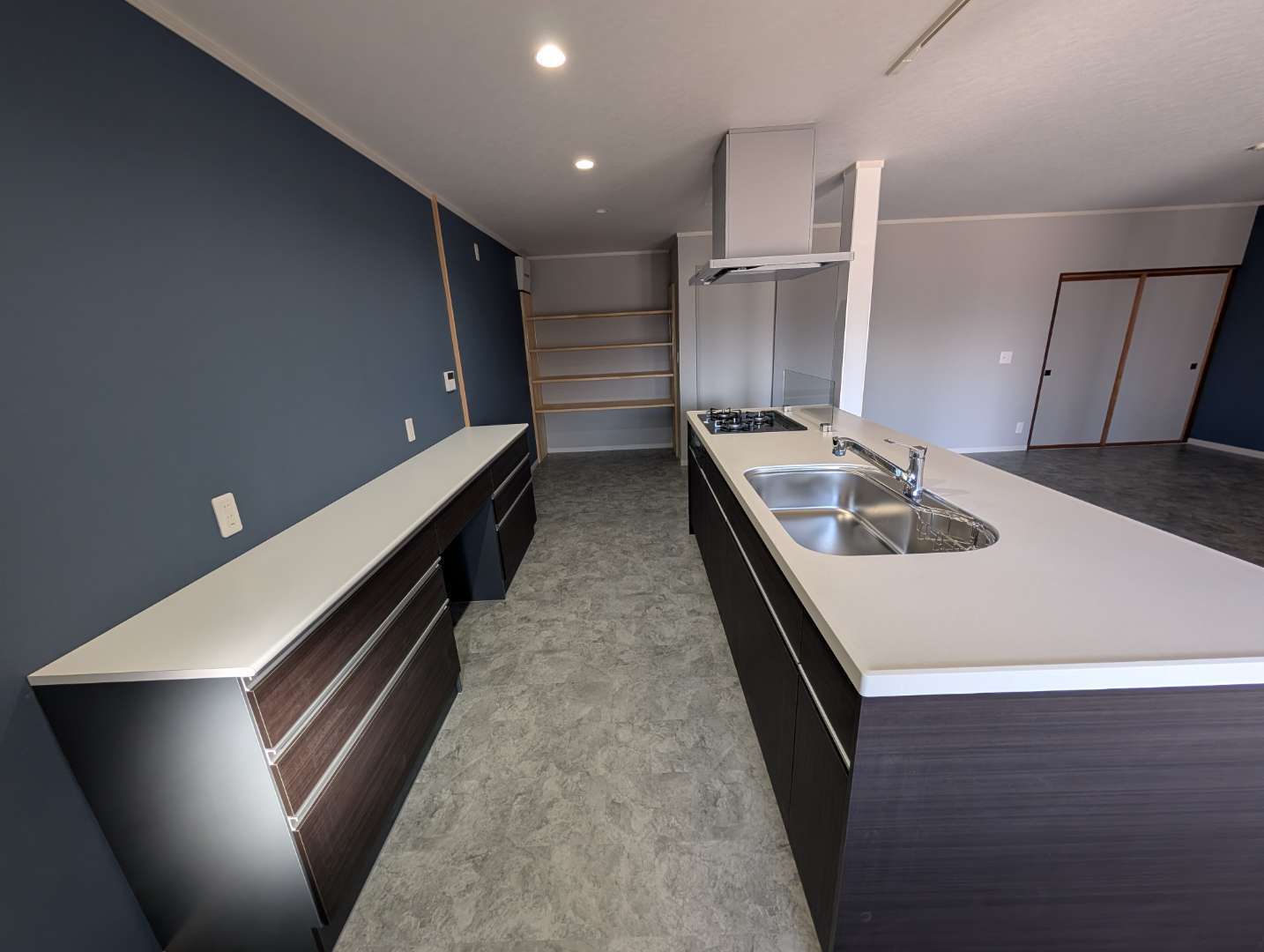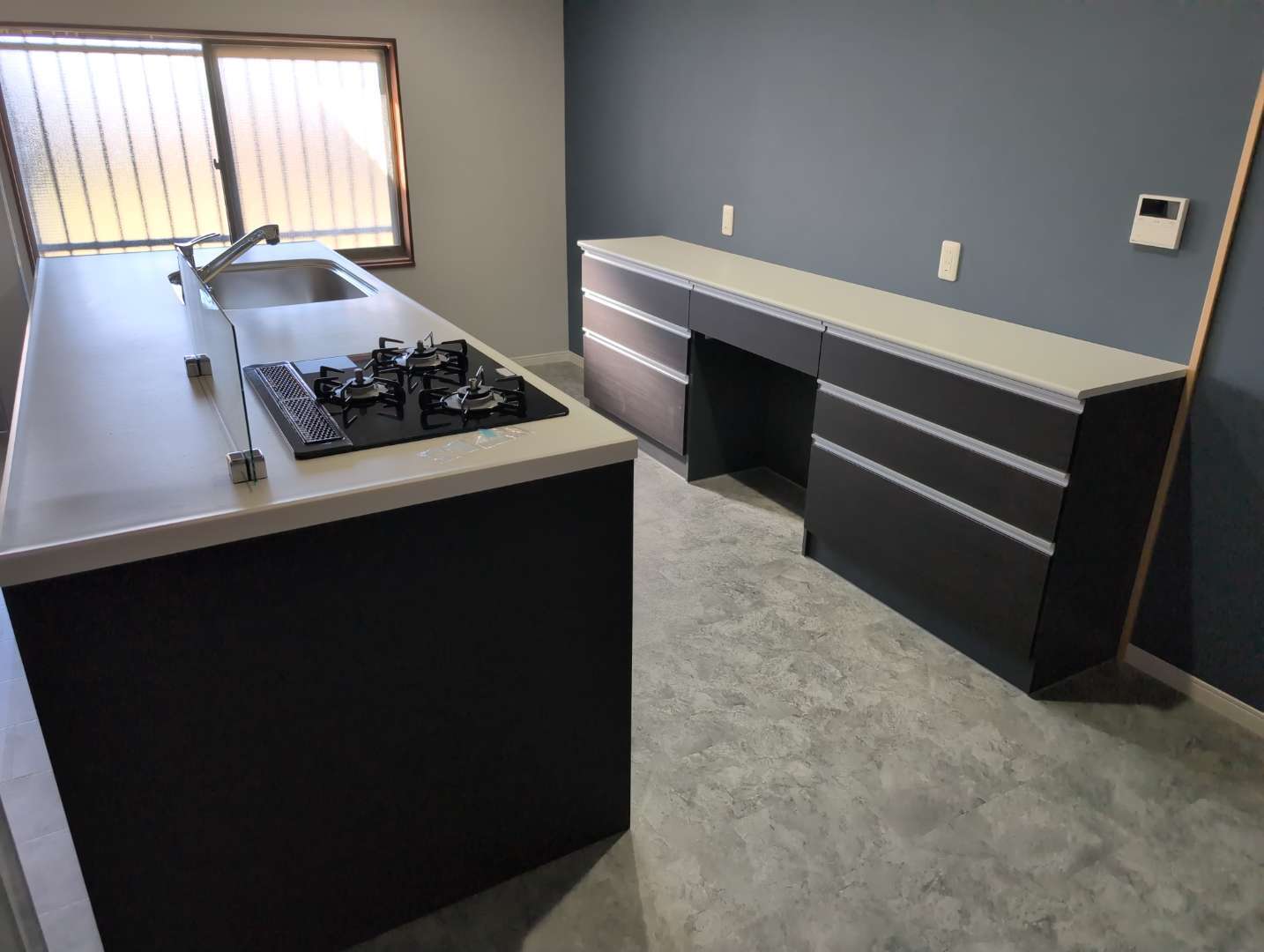 壁を取り払っただけで、リビングがこれほど広く感じるとは思いませんでした。キッチン自体が家具のようにおしゃれで、毎日眺めるだけで気分が上がります。